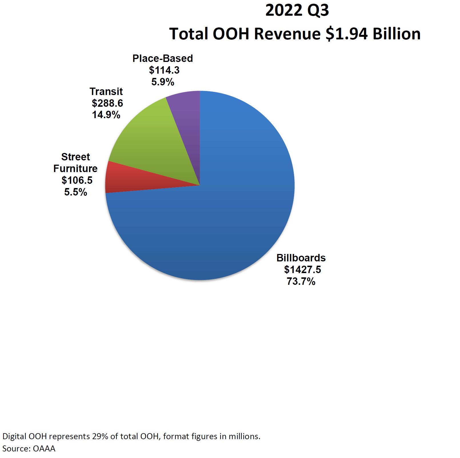 Out-of-home advertising revenue rose 11% in the third quarter of 2022, according to figures in a report from the Out of Home Advertising Association of America, and DOOH has grown 14%, according to a press release.