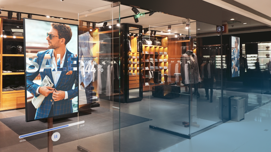 Retail digital signage can be used throughout the store for branding, merchandising, promoting specials, education and engaging with customers.