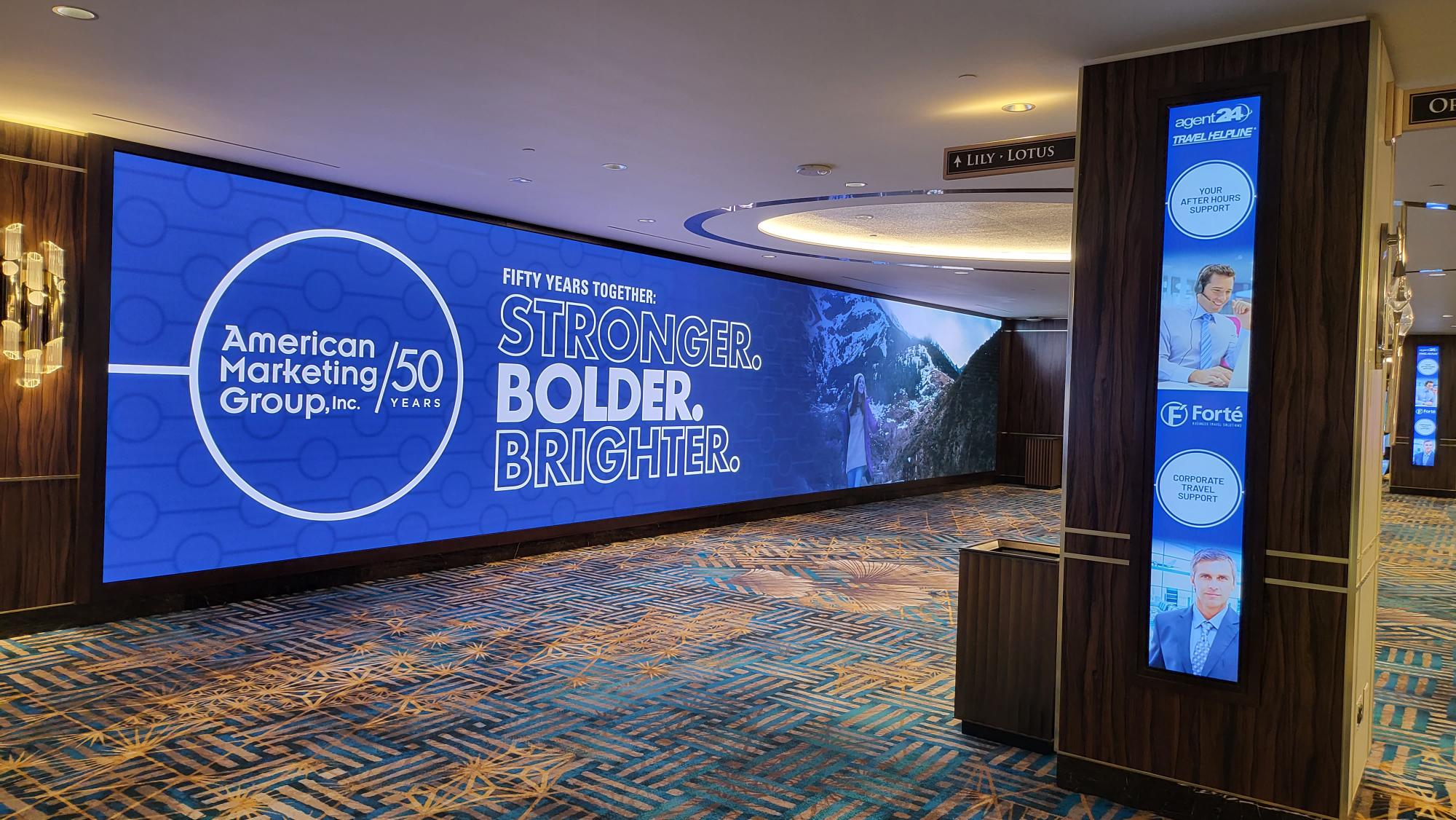 Your approach should also be flexible and lean into the notion of the sign as a multifunction device. "There's a lunchroom downstairs," Cole said, indicating his office space. "We built an LED on wheels, so that we can actually split it apart, when the doors open. So, it's an interesting way to use a physical visual sign even as a barrier or both. It's so cool." Other examples can be using corner LED's at hotel venues, particularly if you want to draw attention away from potentially aging hotel architecture and design while turning a physical space into a branded experience.