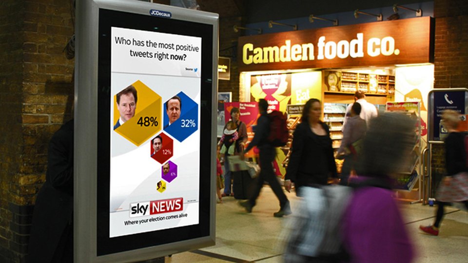 "Sky News coverage of the General Election is about being up-to-the-minute, relevant and accessible across multiple platforms," Sky Media Planning Controller Alasdair Weddell said. "This dynamic digital outdoor solution enables us to be first for breaking election updates even when our consumers are out and about."