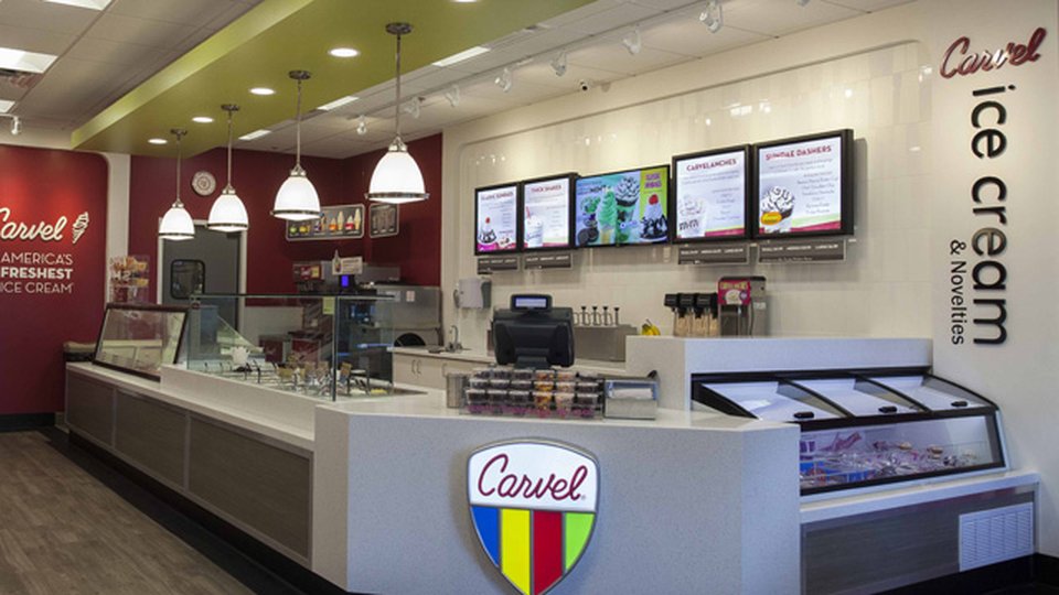 Carvel President Scott Colwell calls the new design “modern and inviting” with features such as new dipping cabinets and a toppings bar, as well as a large display area for the brand's ice cream cakes.