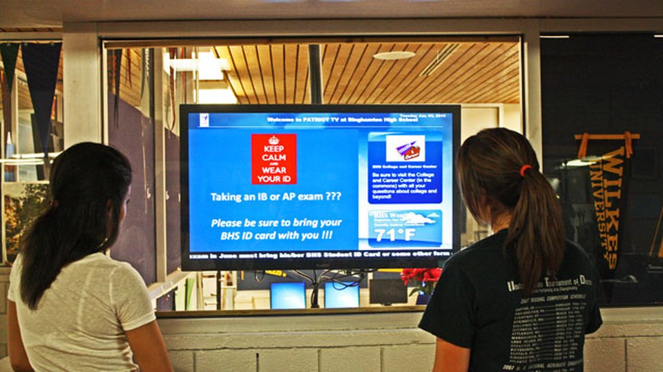 The Binghamton School District was looking to incorporate TVs into its morning announcements, according to Lawrence Kassan, coordinator of special events for the district. Students don't always hear the announcements, or they may need to check back to get details about one of the announcements, he said. "And we thought digital signage would be the best way to go," Kassan told Digital Signage Today, noting that the system also links to the school's website and is smartphone accessible. "Kids can't say, 'Well we didn’t get a chance to hear it,' because there's so many different ways of finding the information."