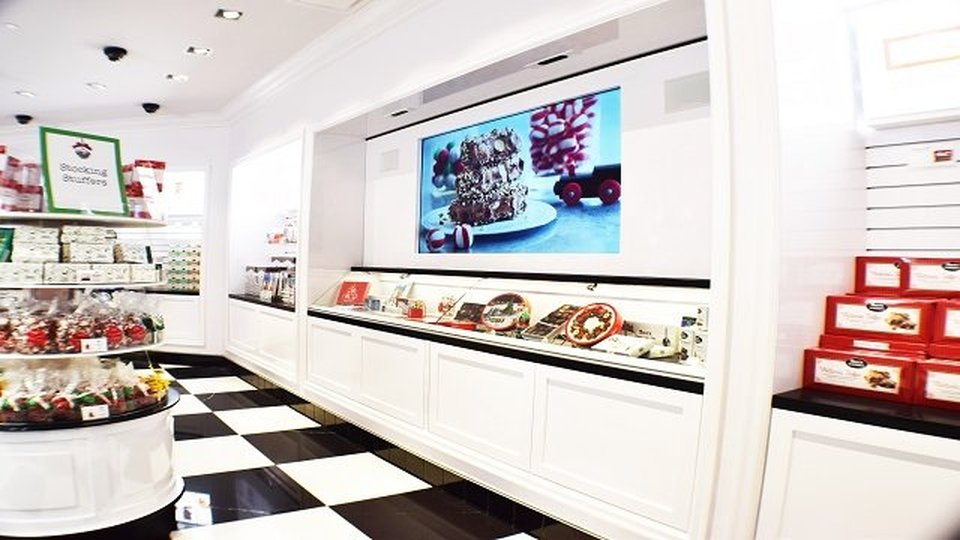 See's Candy digital signage lets airport shoppers see into the company's history in an engaging and interactive way.