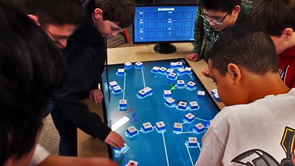 One example of this is the Oztoc exhibit located at the New York Hall of Science, which was created in coordination with Games Learning Society, a research group with the Wisconsin Institutes for Discovery, and the School of Education at the University of Wisconsin–Madison. This exhibit is an interactive multitouch table that investigates how collaboration and learning occur in an informal setting such as museums. Visitors are invited to explore the game on the display system which purposefully does not have instructions. The game allows players to combine both physical blocks, which represent electronic components, to create circuitry and lights to attract and display undiscovered sea creatures. Creating a fun educational environment, children learn to problem solve, reason and collaborate with one another throughout the course of the game. Researchers on the other hand are able to use the game to target and test specific scenarios to learn about the various ways children actually think like engineers.