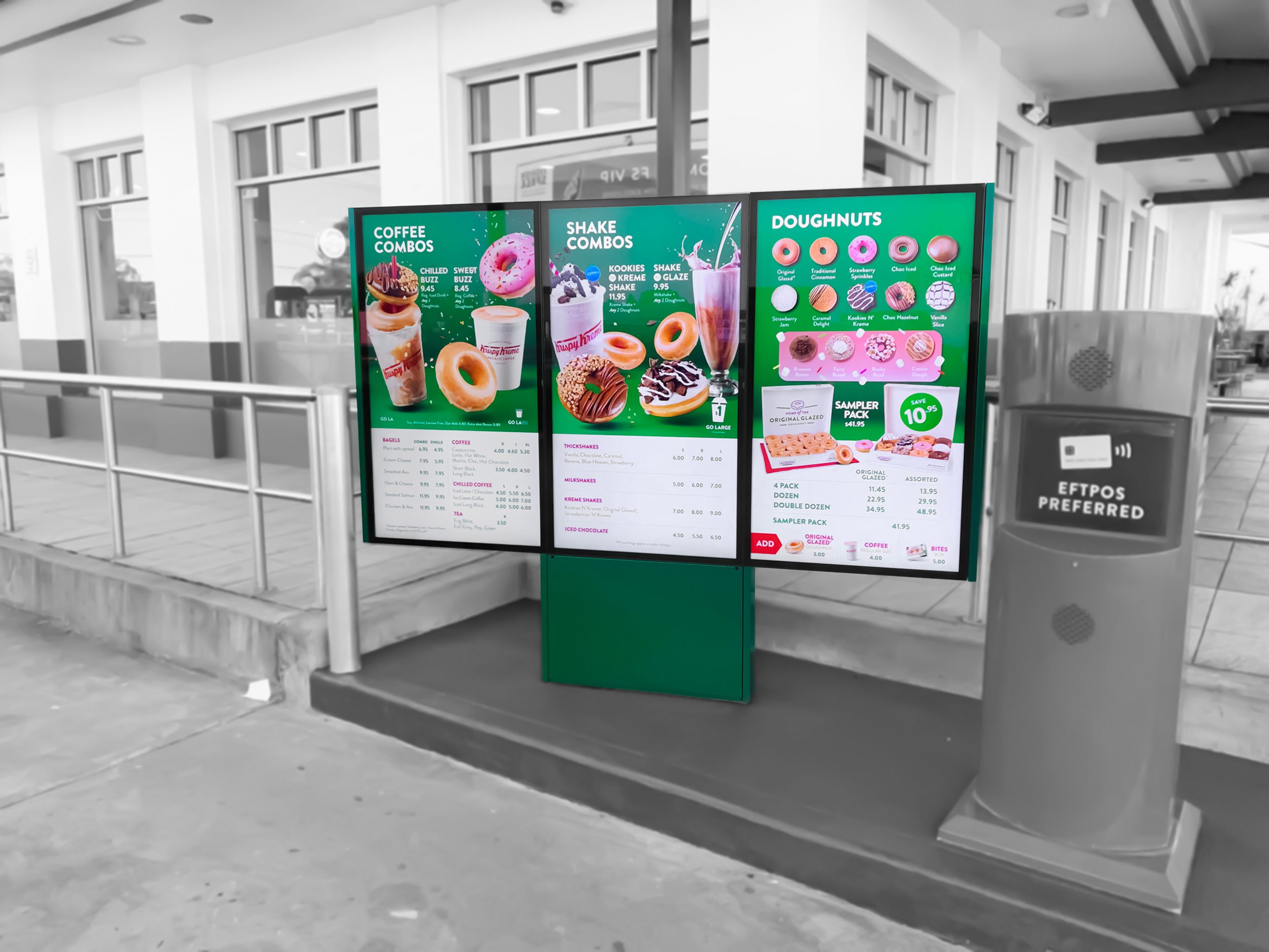 Drive-thru digital menu boards introduce additional requirements. Outdoor displays must deliver high brightness for visibility in direct sunlight and withstand heat, humidity and weather extremes common across Australia.