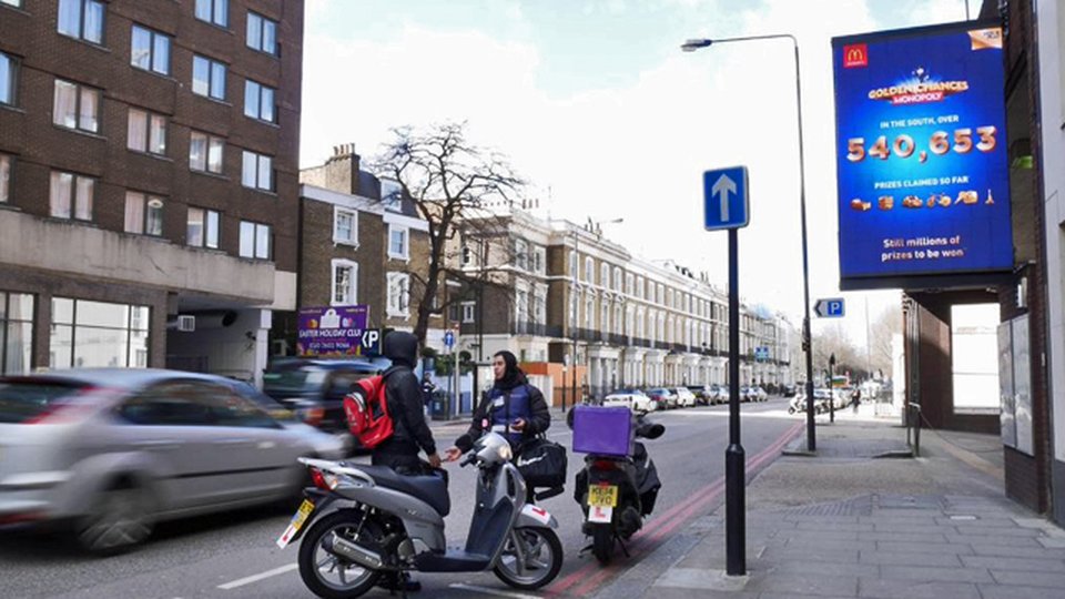 McDonald's U.K. recently launched a digital signage ad campaign in the U.K. to promote the 10th anniversary there of its McDonald's Monopoly campaign running in partnership with Monopoly game maker Hasbro.