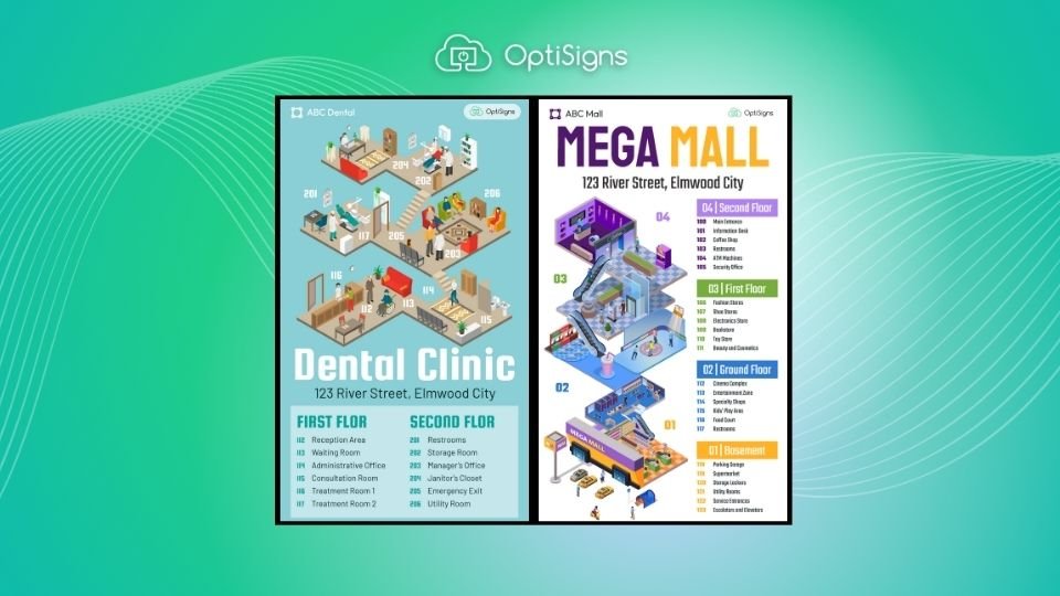 With OptiSigns, maps and directories can be interactive, searchable, and updated in real time across all locations from a single dashboard.