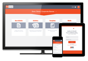 Carousel is digital signage software for screens of all sizes. It helps keep everyone from your corporate office to your school districts & everywhere in-between feeling welcome, informed & connected. Going beyond your typical wall mounted displays, it sends tailored messages to your audiences through tablets, mobile devices and desktop computers, allowing you to reach your audience at the right place and time. (Available on Android, Apple and Windows - visit our website for details)