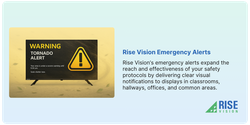 Rise Vision’s emergency alerts expand the reach and effectiveness of your safety protocols by delivering clear visual notifications to displays, interactive flat panels, and wireless presentation systems in classrooms, hallways, offices, and common areas.