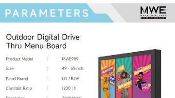 download nowExplore the MWE 989 outdoor digital drive-thru menu board product brochure from MWE. Designed for DOOH and QSR drive-thru applications, MWE 989 is available in…