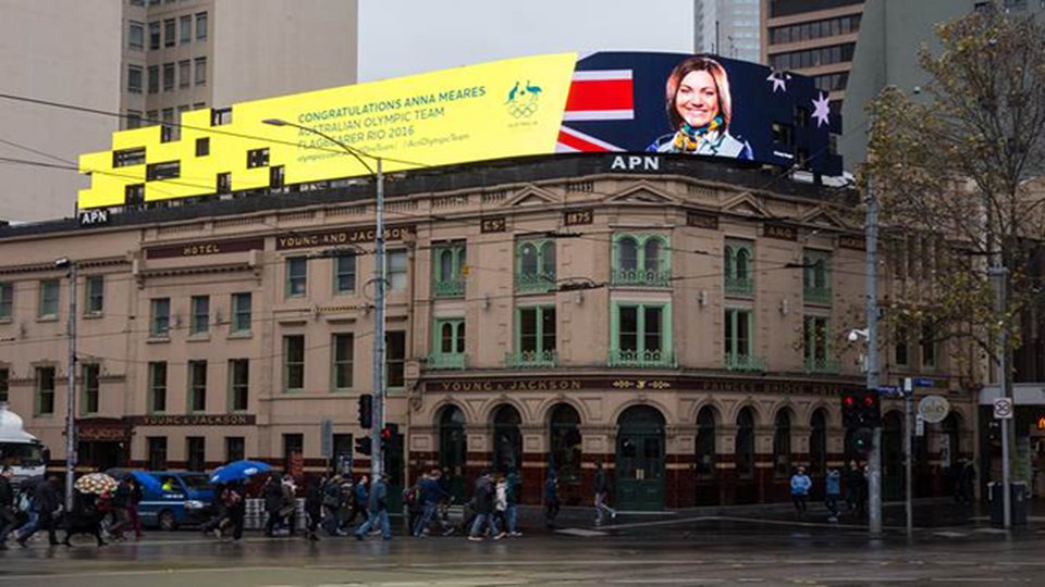 On top of the announcement, APN Outdoor and Australia's Olympic Network, the Seven Network, facilitated an activation in Melbourne's Federation Square to generate excitement and public interest in the event. This activation encouraged Melburnians to attend the announcement and then join officials in the Seven Network marquee where they could interact with a green screen and props to share in the glory of being the flagbearer, the release said. The manipulated image, depicting the partakers as flagbearer, was then momentarily loaded onto the adjacent Young and Jackson Hotel Elite Screen, and 18 other digital sites around the country, giving participants their moment of fame and providing material to share on social media.