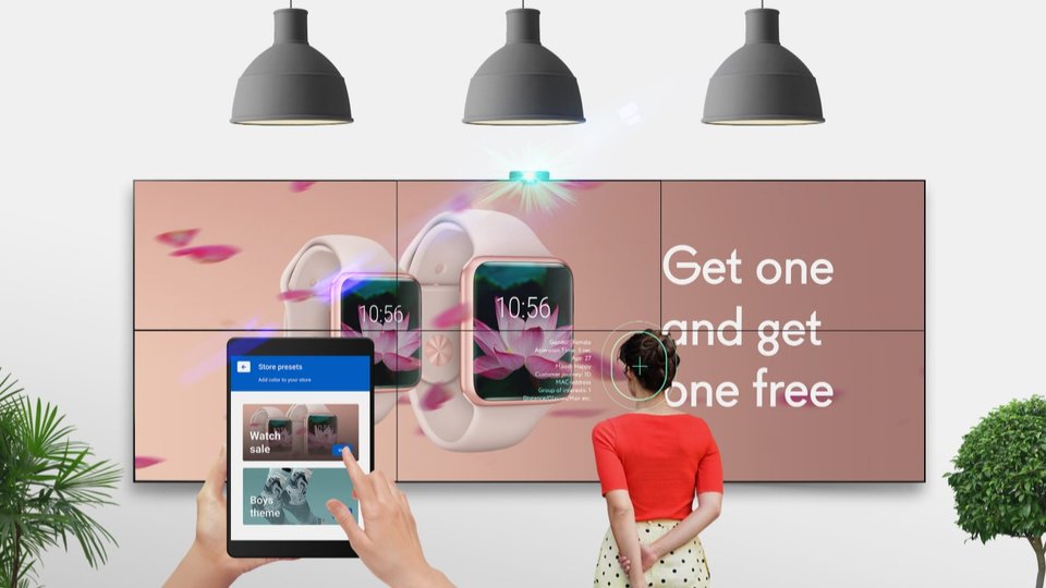 Displayforce Box has a built-in camera that impersonally analyzes visitors in real-time using face recognition to show the audience the most relevant ads as it happens online. Offers can respond not only to gender, age or interests of the visitors but also to triggers like today's weather based on data aggregation. It can be connected to TVs, video wall, LED screens and powered by the screen.