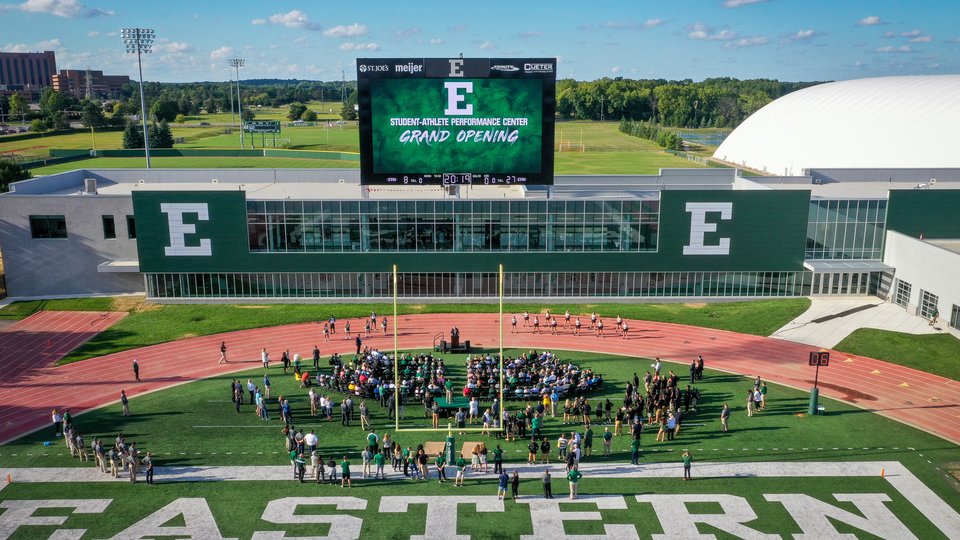 "With the old video board, we just took an analog signal from the broadcast feed, and cut in occasional footage from older cameras," Greg Steiner, associate athletic director, media relations at EMU, said in the release. "We needed to enhance the in-venue experience, as when fans come into the stadium and watch our video board, their expectations have been set by what they see on television. We strive to provide unique on-site opportunities that fans can't get at home, while also delivering what they already expect to see from TV."