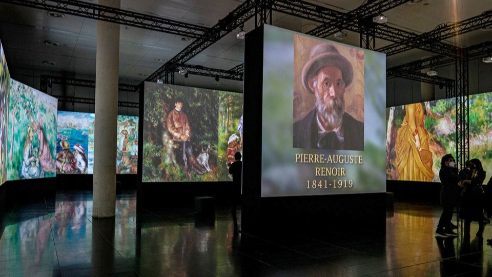 The Impressionists exhibition features 14 screens – each being 4.4 meters in height – spanning 116 meters in total. Content for the exhibition created by Front Pictures is hosted on the company's Screenberry media server. From there, the content is routed to six QuadHead2Go Q155 appliances – each capturing an HDMI video signal from the media server for display across four HDMI-equipped projectors.