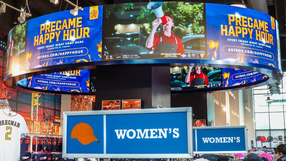 Minute Maid Park, home of the Houston Astros, has unveiled a dual-sided halo display by Watchfire in the Team Store merchandise shop, according to a press release.