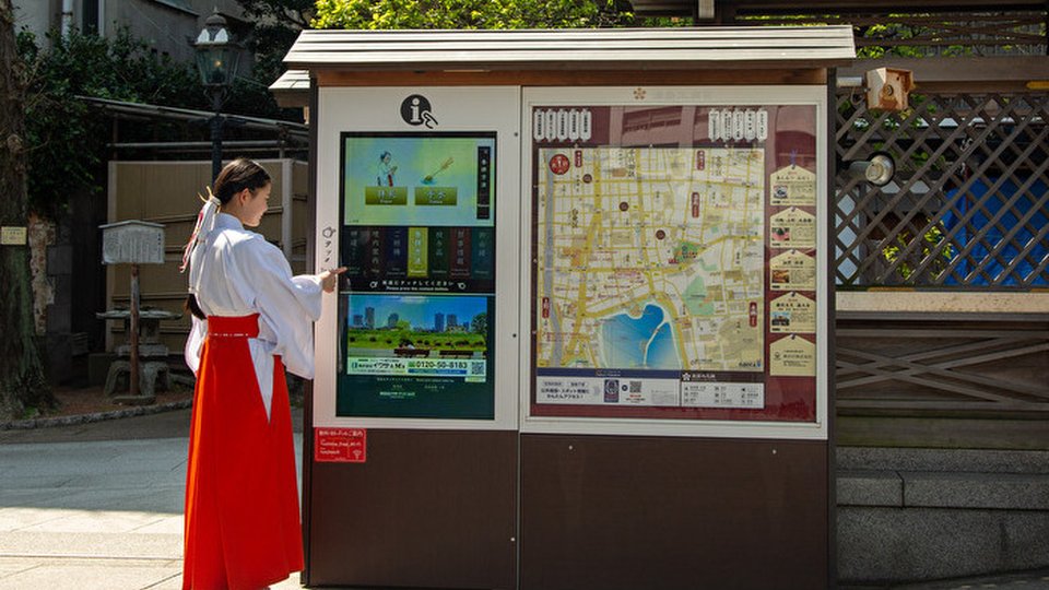 Digital signage system supplier, Hyojito, which provides public information and wayfinding solutions for the Japanese mass transit sector and other municipal spaces, has installed interactive touchscreens in Shinto shrines in Japan, according to a press release.