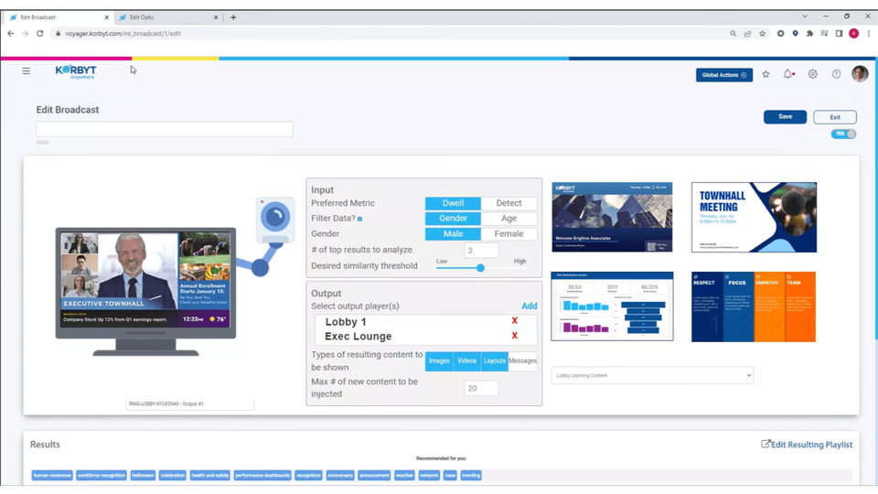 Korbyt, a workplace communications tech firm, has announced the launch of its Machine Learning Broadcast solution, which leverages AI-powered camera optics and machine learning to adjust digital signage content in real time based on engagement and dwell time, according to a press release.