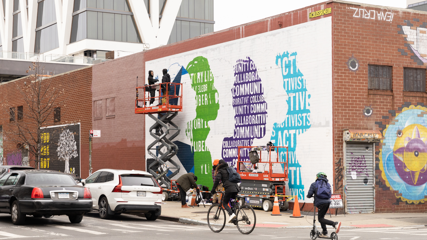 Lamar Advertising has collaborated with Lamar's Colossal Media division along with Black Artists + Designers Guild (BADG) to create a hand-painted mural that will also be displayed on Lamar digital billboards throughout the U.S. during February. The mural features the BADG manifesto: "We are liberatory, celebratory, collaborative, community, active, activists." The mural, located at the corner of North 12th and Berry Street in historic Williamsburg, measures 20-feet by 40-feet and the hand-painted color scheme leverages BADG's signature colors representing common vegetal dyes in African textiles.