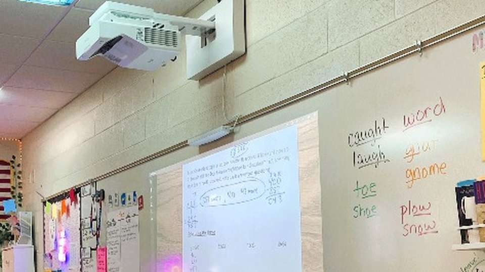 "The size of the flat panel was a big turn off for teachers. They are difficult to see and aren't big enough for the classroom," Quinteros said in the release. "If a student is sitting in the back of the classroom, they aren't able to read the flat panel no matter how big it is."
