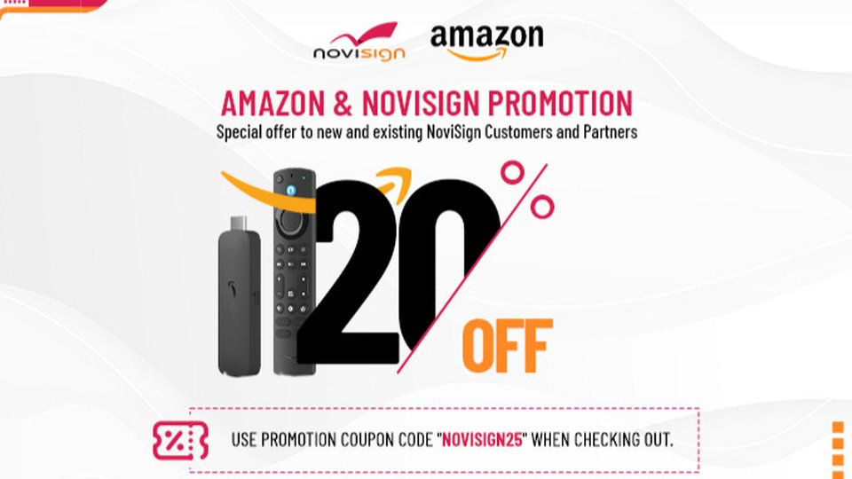 NoviSign and Amazon are partnering and celebrating the partnership with a discount on the Amazon Signage Stick for NoviSign's ecosystem.