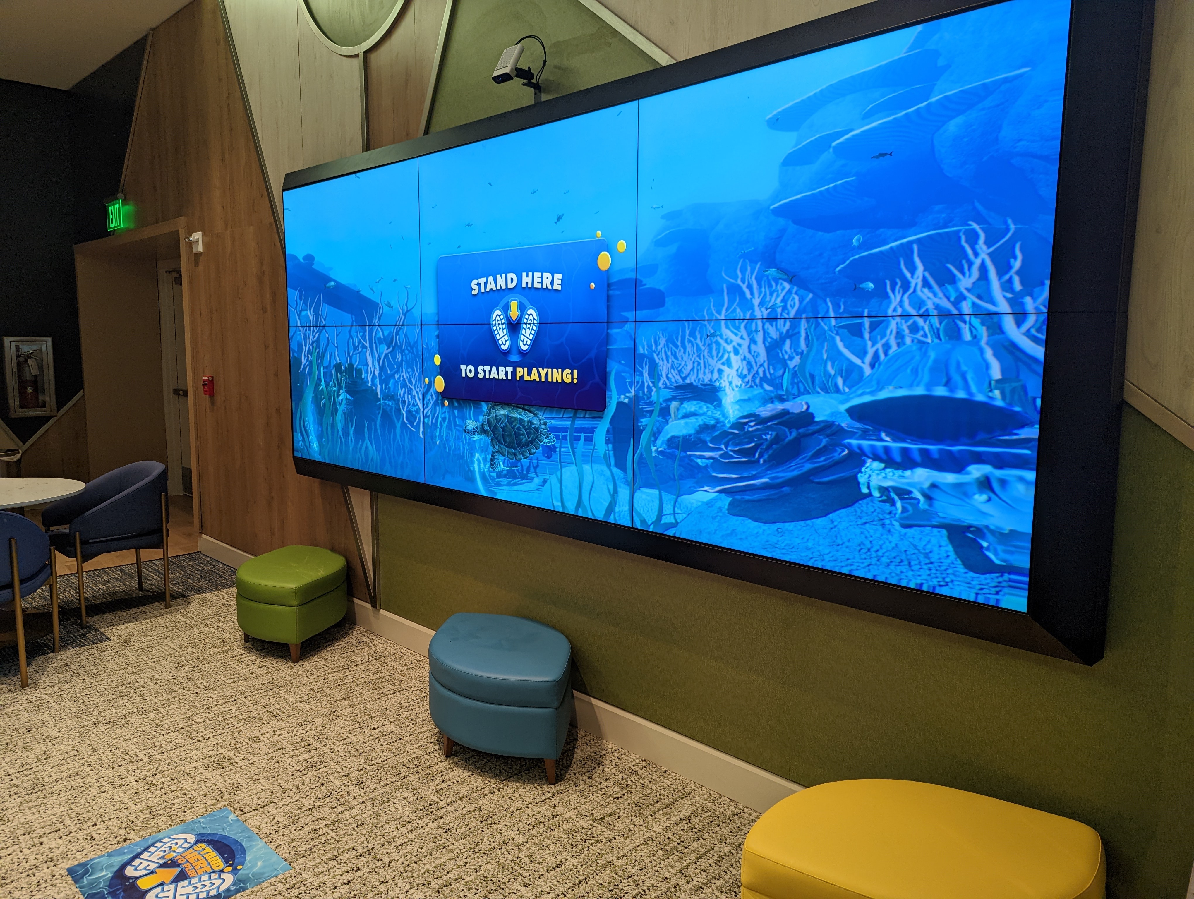 The focus of the game, the Green Sea Turtle, is an homage to a trademark member of the Florida ecosystem. Game content and animation from edgefactory, interactive components by X Studios, and digital signage installation by Pro Sound were all part of the rollout.