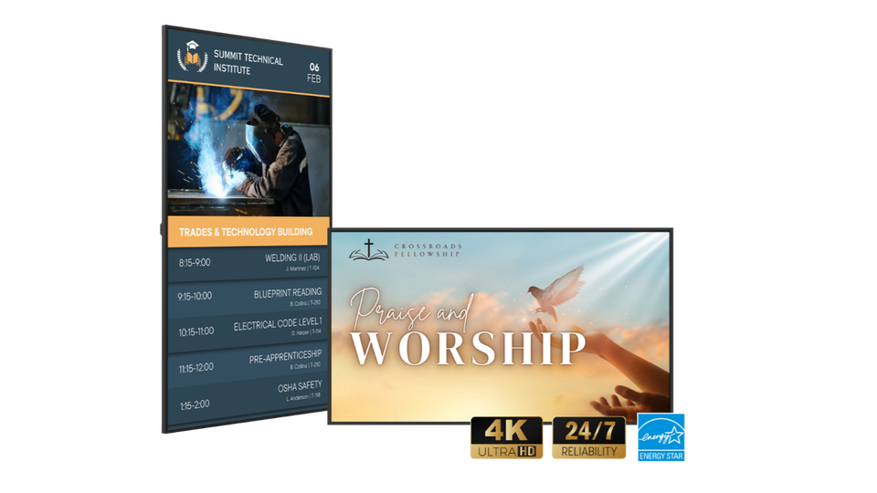 This line of large format 4K LCD displays introduces wireless connectivity for essential digital signage applications spanning advertising, wayfinding, menu boards, presentations and emergency messaging, according to a press release.