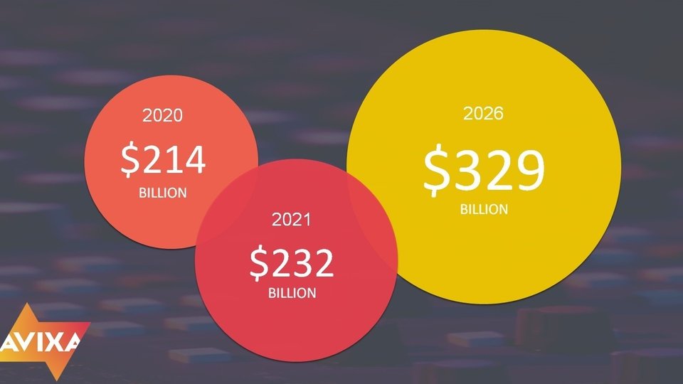 After peaking at $259 billion in 2019, pro AV industry revenue dropped to $214 billion globally in 2020 due to the COVID-19 pandemic, according to the new 2021 AV Industry Outlook and Trends Analysis released by AVIXA, the Audiovisual and Integrated Experience Association.