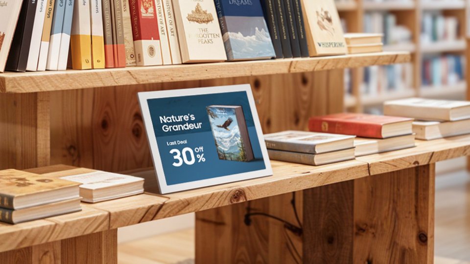 As the smallest model in the Samsung lineup, the 13-inch Samsung Color E-Paper offers businesses a compact display option for shelves, counters, tables and doors where traditional paper signage is still widely used. Similar in scale to A4 paper, the display delivers 1,600 x 1,200 resolution in a 4:3 aspect ratio.