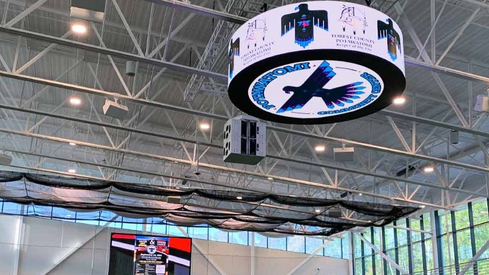 After the fieldhouse chandelier was installed, the Forest County Potawatomi decided to add a second center-hung to the digital signage network in the venue's gymnasium. The gymnasium digital chandelier consists of a ring section only. It also has a 2.9-millimeter pixel pitch.