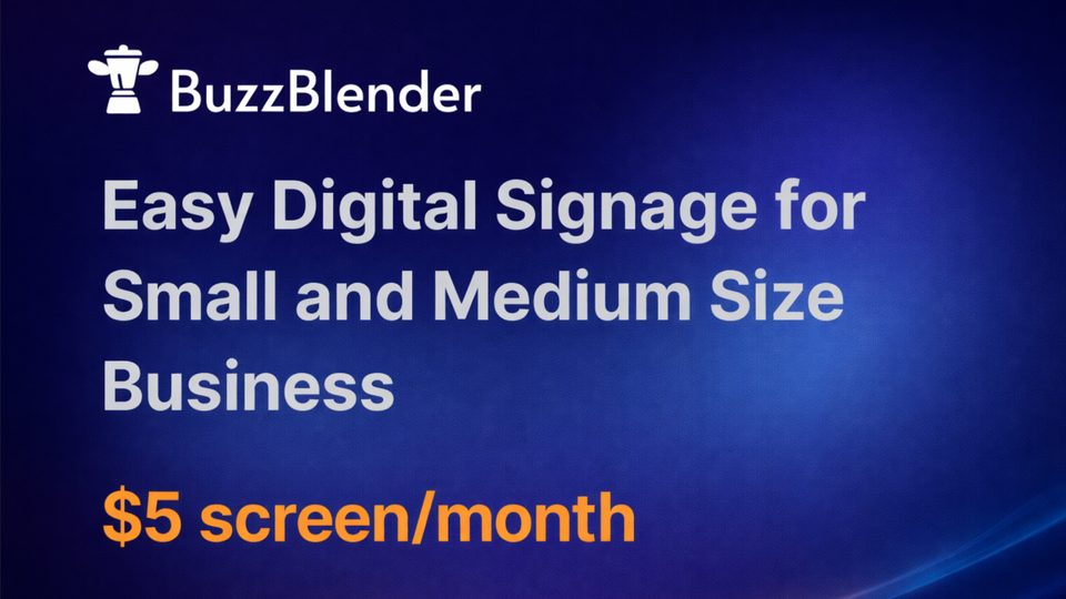 Buzzblender is a modern digital signage platform built for today’s SMB market, supporting LG WebOS, Samsung (Tizen), Philips, Xiaomi, and other Android-based smart TVs. The platform combines ease of use, affordability, and powerful engagement tools to help businesses communicate more effectively with their customers.