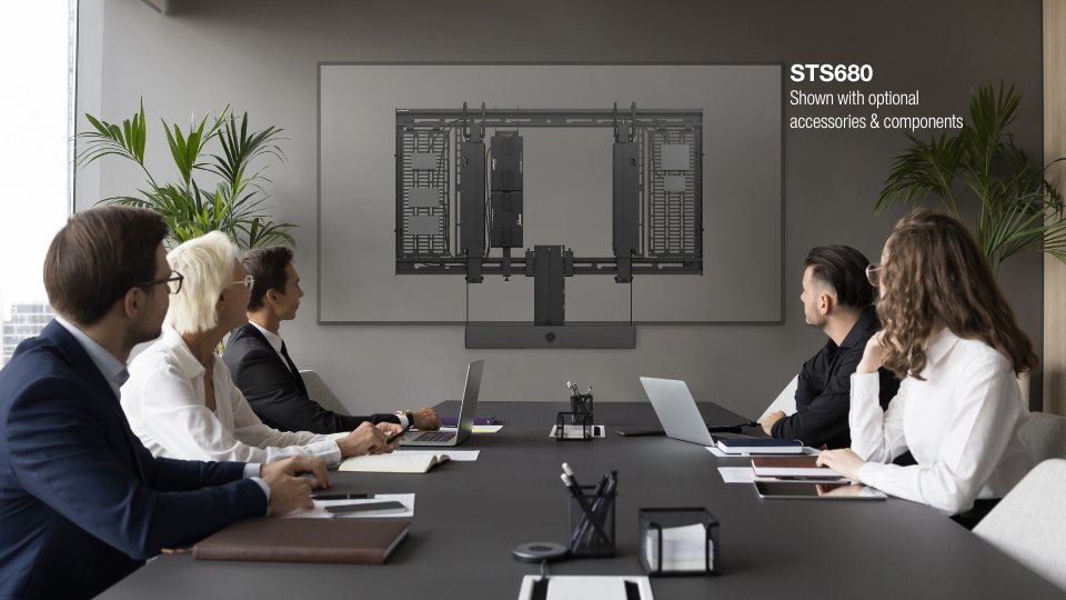 The STS680 redefines traditional mounting infrastructure with its future-proof, modular design that adapts to collaborative workplaces, digital signage, retail and hospitality environments. Integrators can now specify a single solution that reduces project complexity, minimizes installation time, and ensures long-term value for their customers. As display sizes increase, equipment requirements evolve, or control and automation systems change, the STS680 ecosystem scales seamlessly to support new hardware demands.