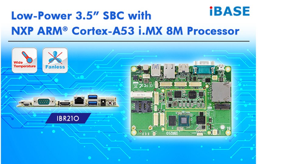 Taipei, Taiwan – IBASE Technology, a world leading manufacturer of industrial PCs and embedded computing systems, has announced the new IBR210 3.5-inch single board computer featuring NXP’s dual or quad core Arm Cortex-A53 i.MX 8 processors in 1.3GHz and 1.5GHz CPU frequencies. The i.MX 8 application processors are built with advance media processing, allowing IBR210 to deliver 4K HDMI content with HDR and run a dual-channel FHD LVDS display. The board is targeted at multiple signage displays at airports, train and bus stations, and shopping malls, as well as HMI passenger information applications.