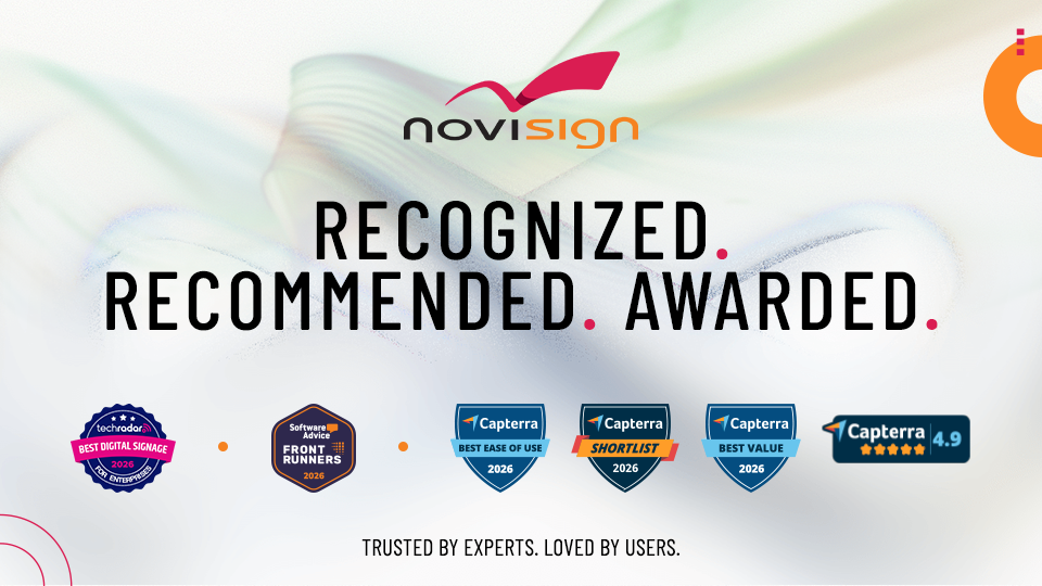 NoviSign was named Best Digital Signage Software for Enterprises by TechRadar, a leading global technology publication. In addition, NoviSign earned multiple distinctions across Gartner Digital Markets, including its review platforms Capterra, GetApp, and Software Advice, based on verified end-user feedback.