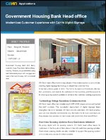 GH Bank is a government housing bank in Thailand that offers low-interest rate mortgages, land loans, and residential loan services. GH Bank's Head Office in Bangkok has installed CAYIN's digital signage solution to enhance their customer experience. The solution helps the bank to communicate information, promotions, and news to its customers through digital displays located above and behind the staff counters. The real-time queuing system updates displayed on the digital signage allow customers to track their waiting time and significantly reduce staff workload. The success of the digital signage deployment demonstrates the importance of keeping up with the latest technology to deliver top-notch service to customers and meet their needs.