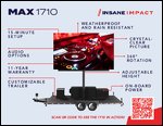 As Insane Impact's flagship product, the MAX 1710 Mobile LED Trailer lays the foundation for our entire fleet. Designed to impress and perform in any environment, this unit showcases the pinnacle of American craftsmanship. Backed by an industry-leading 11-year warranty, the MAX 1710 delivers seamless, high-performance visual impact, ensuring your content commands attention at every event.