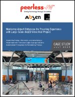 Peerless-AV® teamed up with Pop Media Technology and Absen Inc. to create 29 different solutions during this airport’s remodeling period. The result is absolutely stunning dvLED video walls in taxi areas, main entrances, boarding gates, check-in halls, and more.